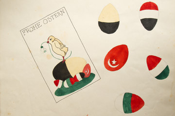Ostereier in den Farben der Verbündeten, Zeichnung von Gabriele Sonderwald, 1916 SammlungFrauennachlässe, Institut für Geschichte … -