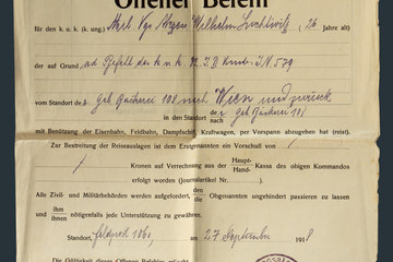 „Offener Befehl“ eines Offiziers der k. u. k. Gebirgsbäckerei Nr. 108, 1918 SammlungFrauennachlässe, Institut für Geschichte … -